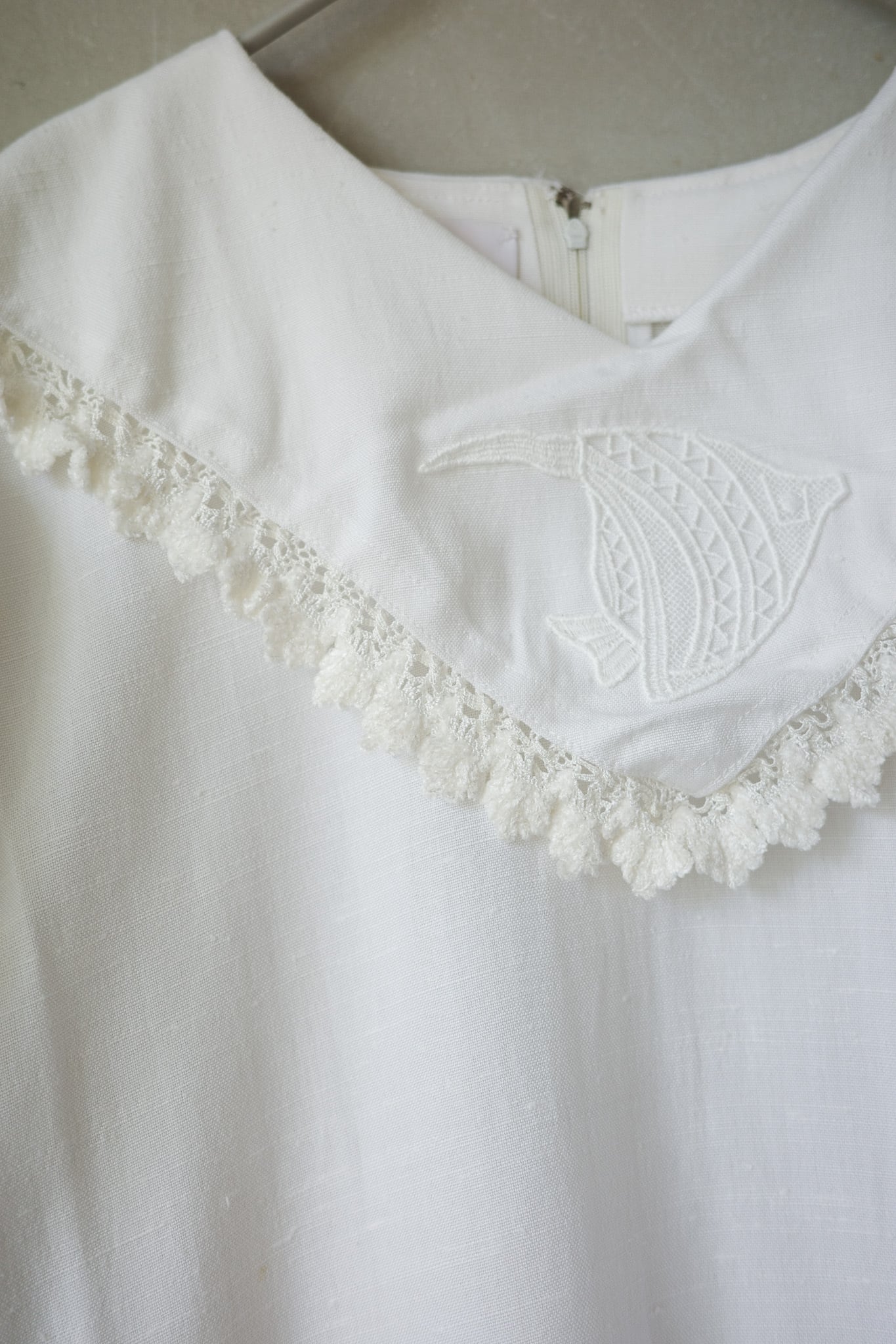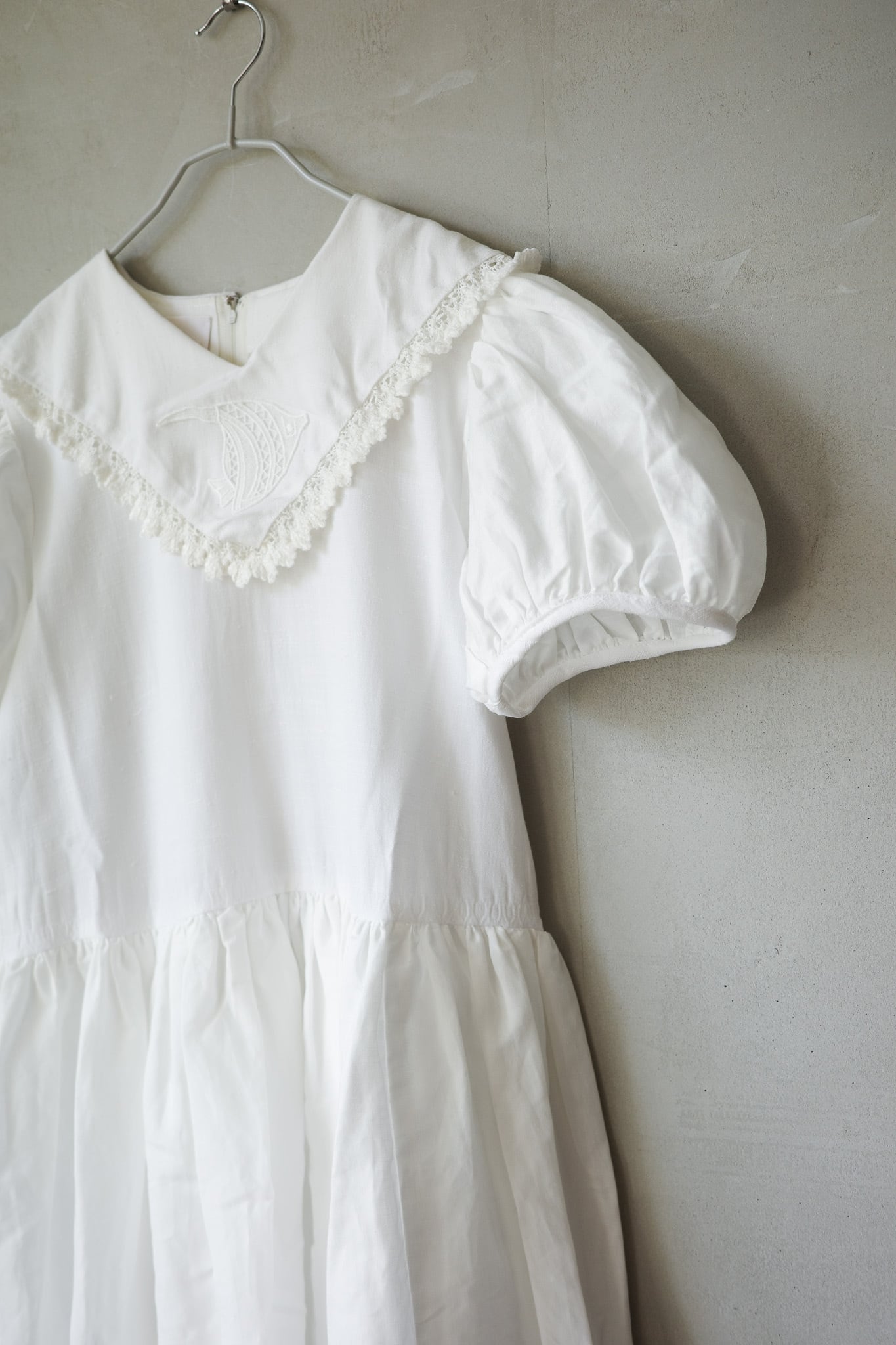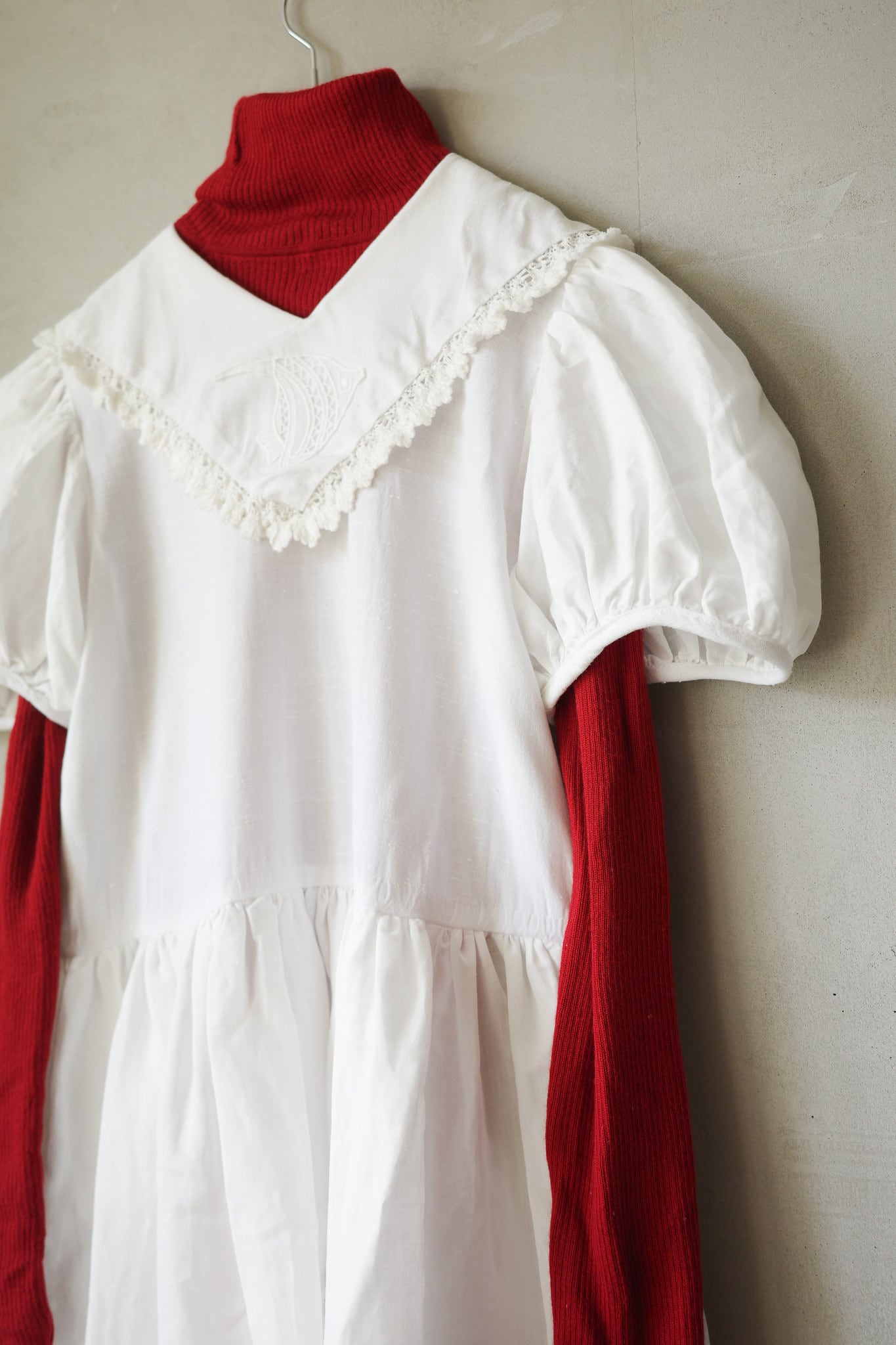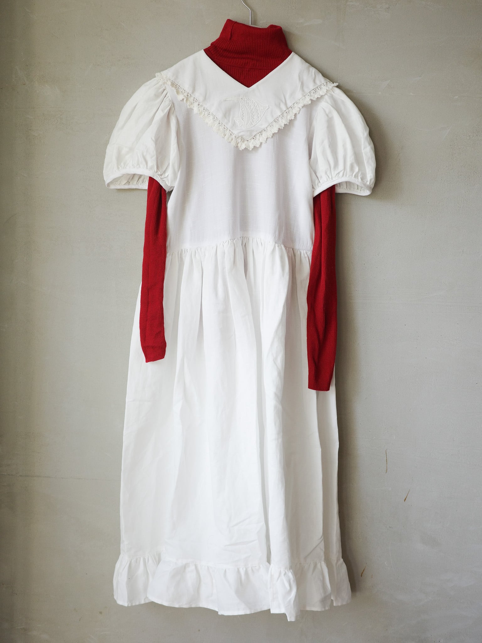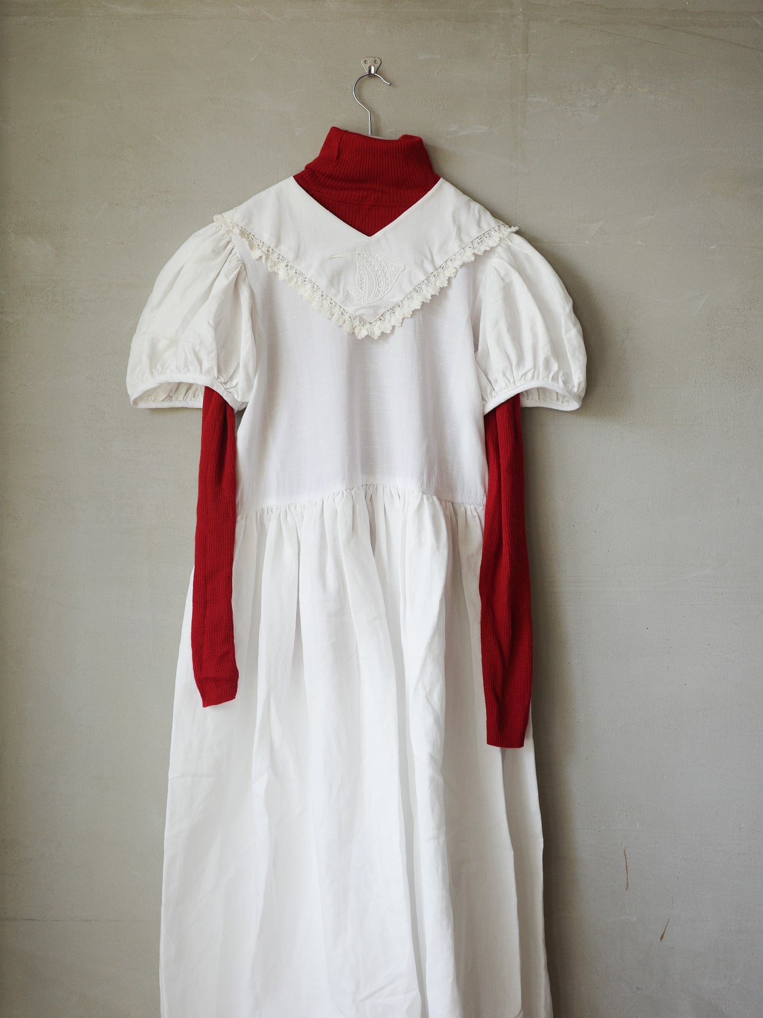 ビンテージのコットンドレスのようなイメージで、衿やお袖を作りました。