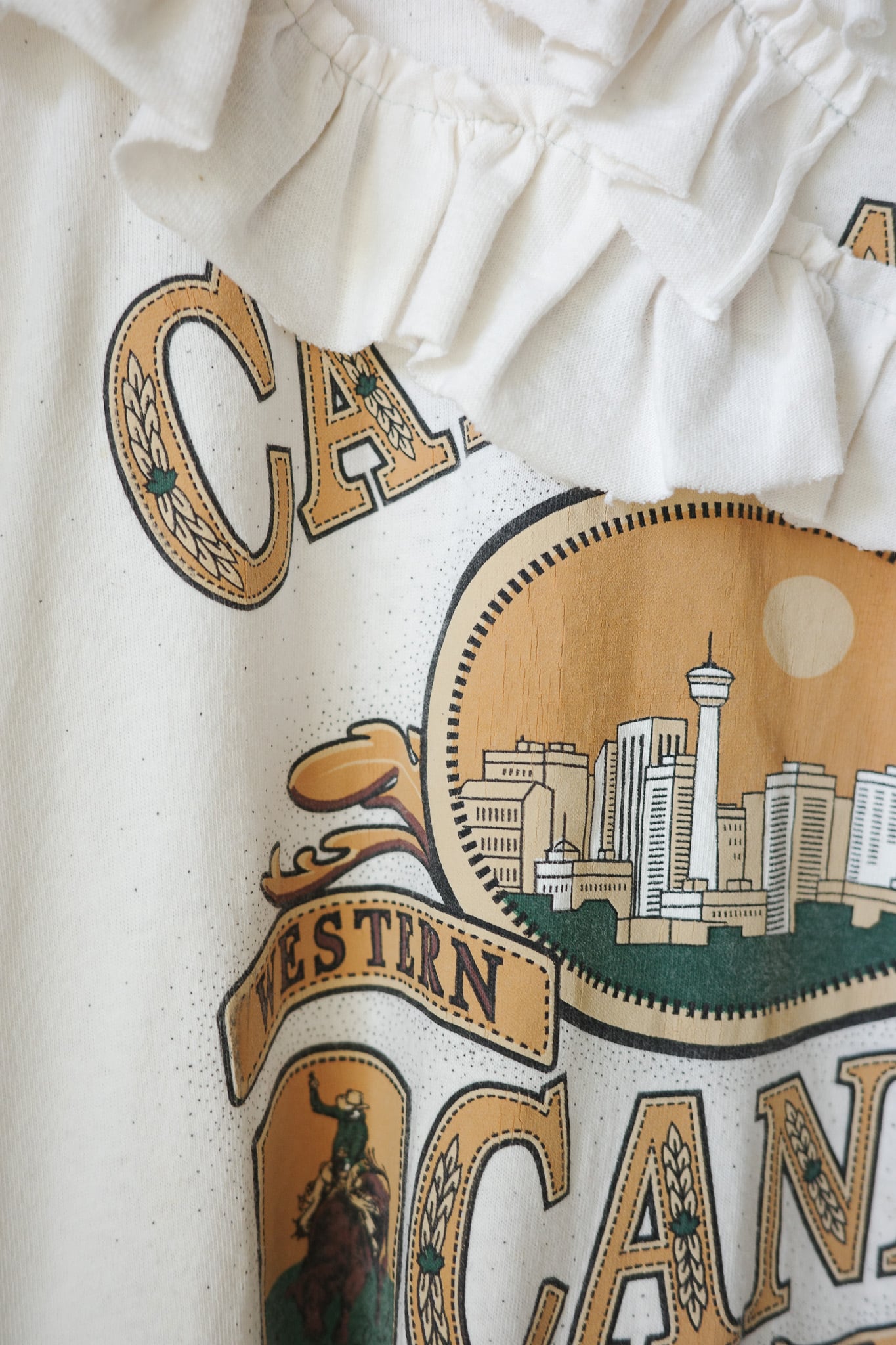 プリントはパキっと古着らしいレトロなイラストとロゴ