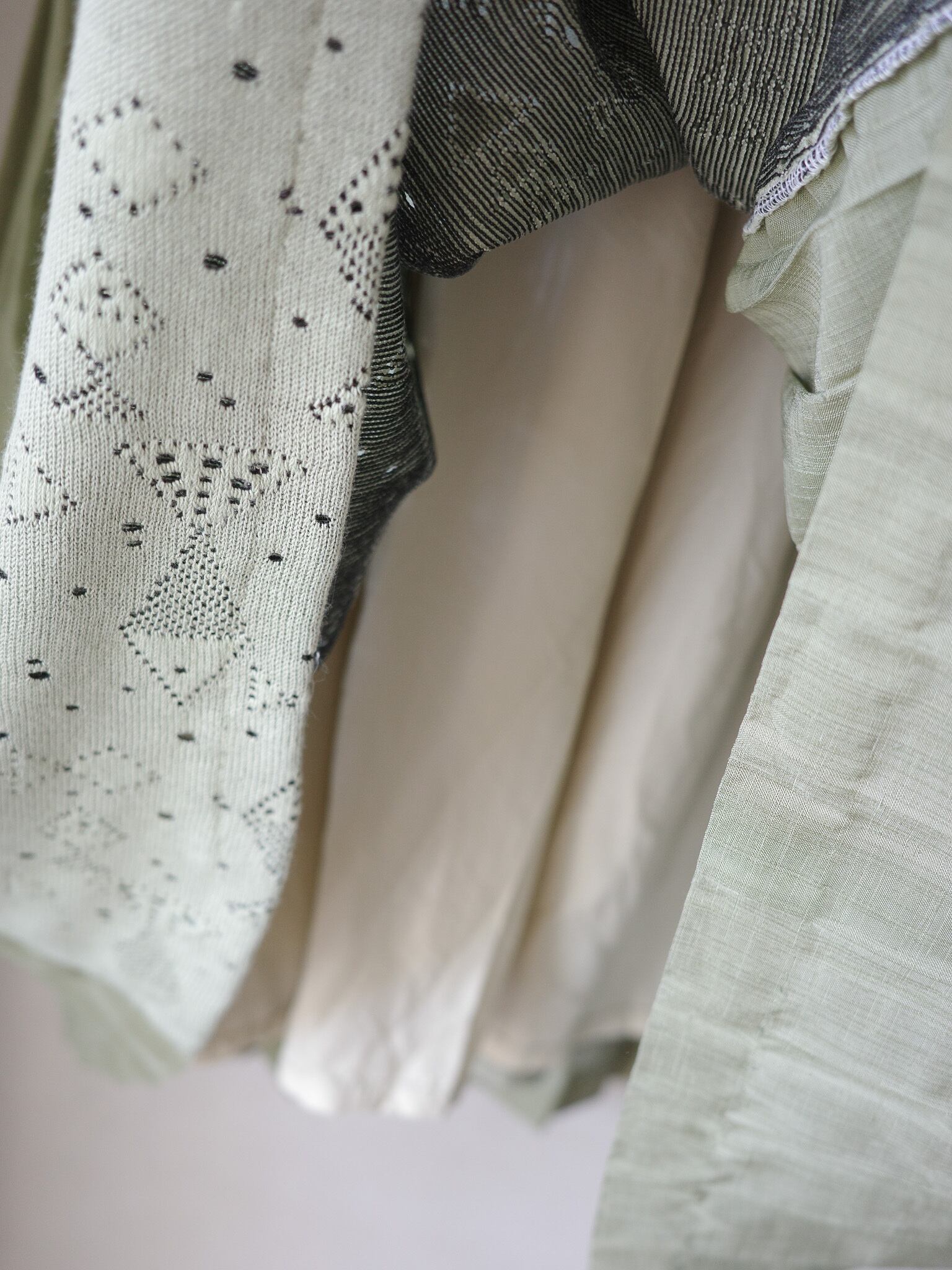 ボディの生地は無漂泊のコットンのような、やさしい生成りカラーです。