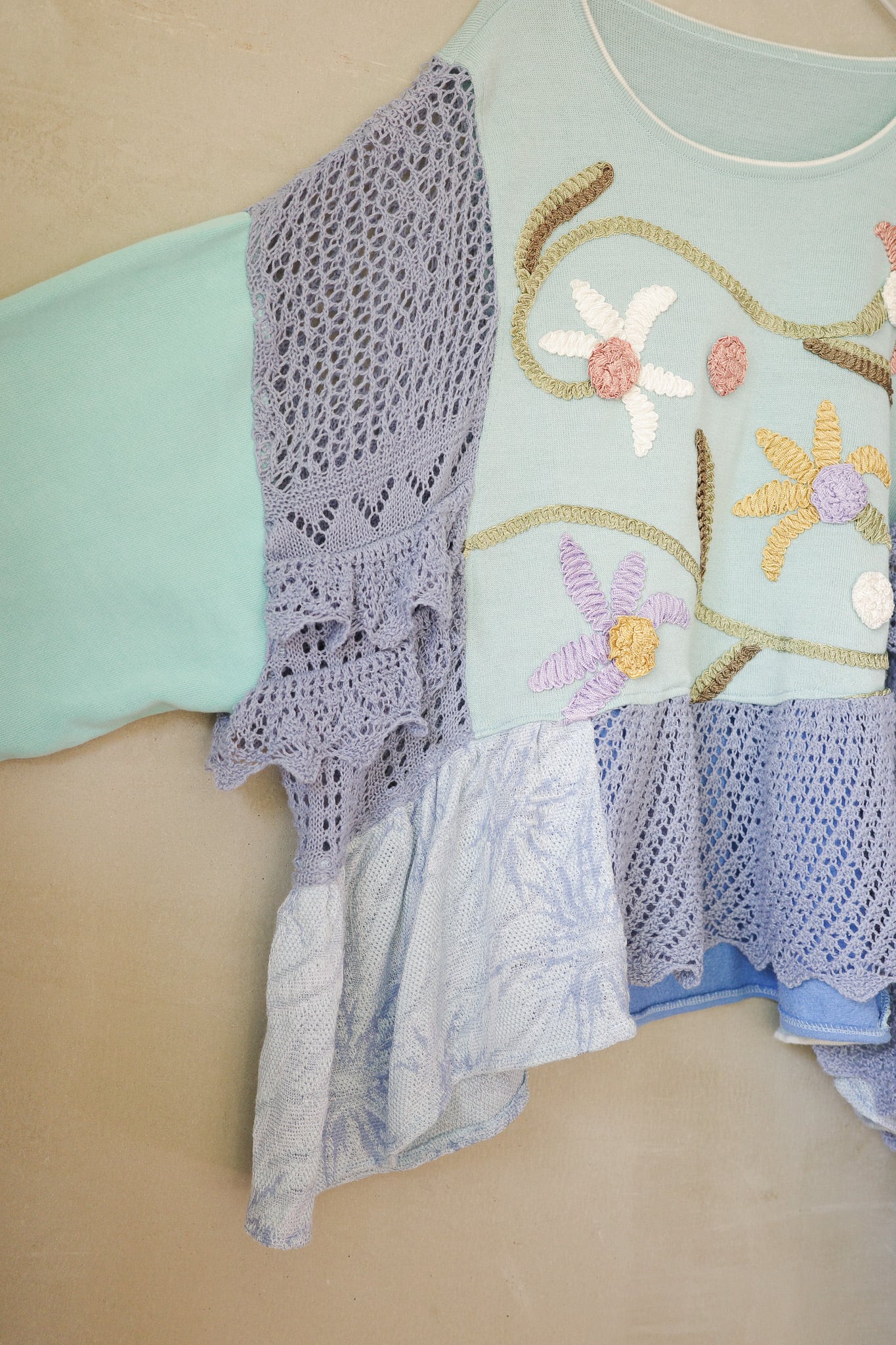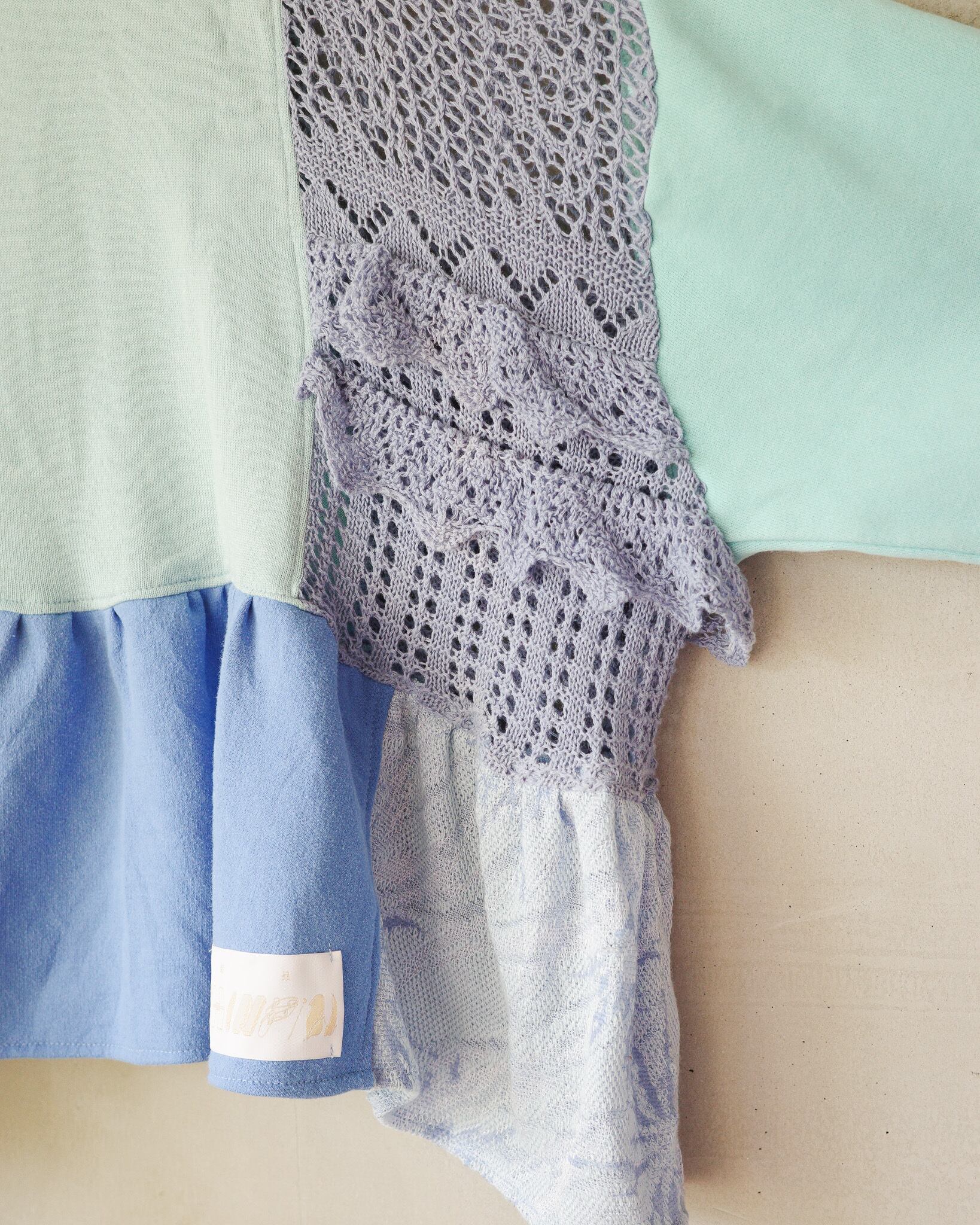 サイドはざっくり編み素材でフリルがかわいいです◎