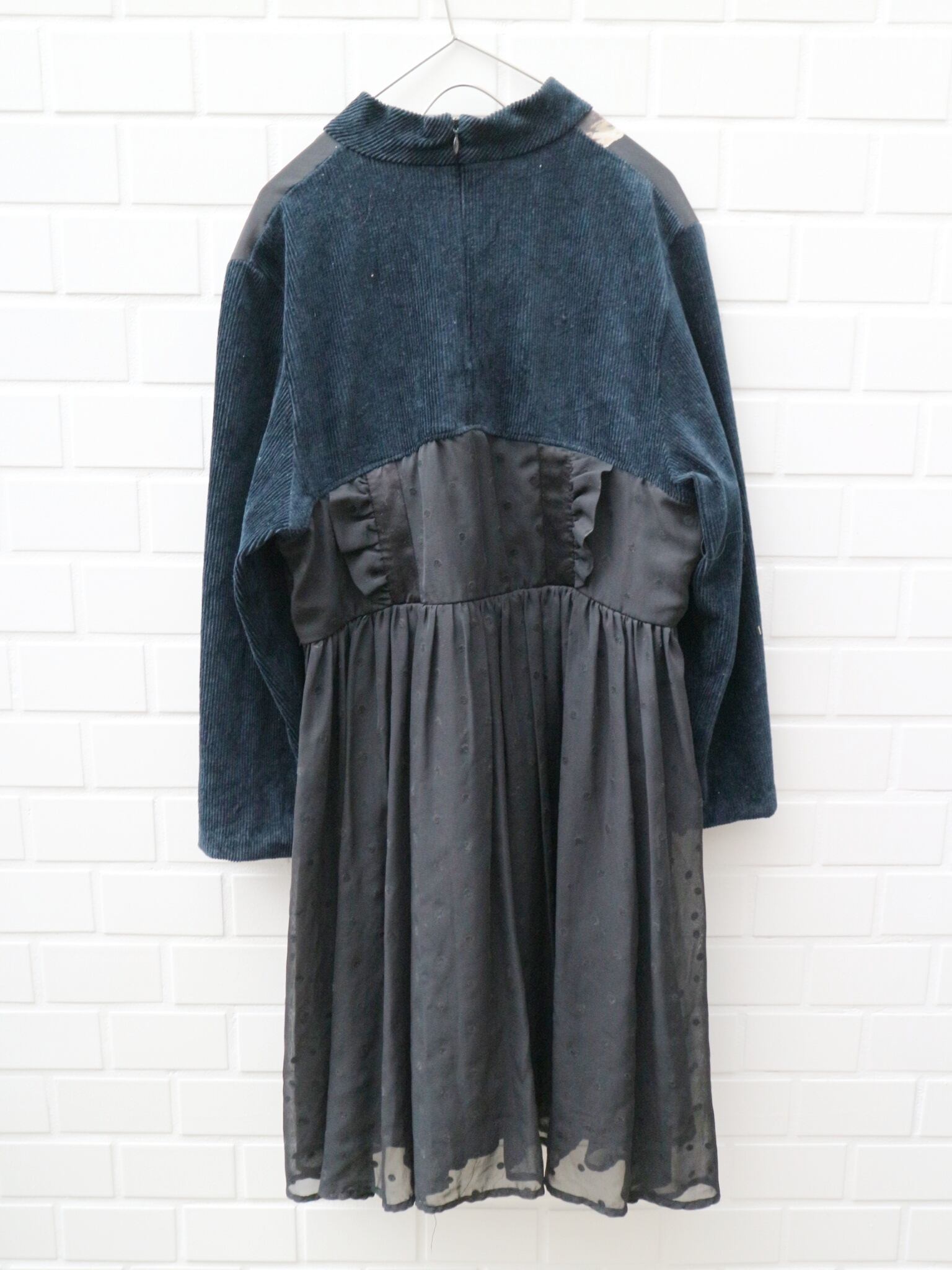 後ろ中心、脇下にファスナー開きあり。