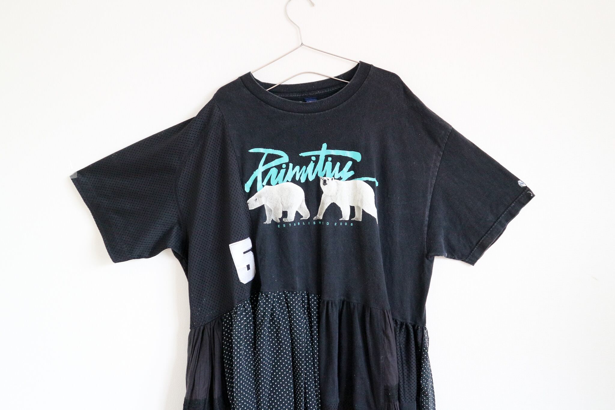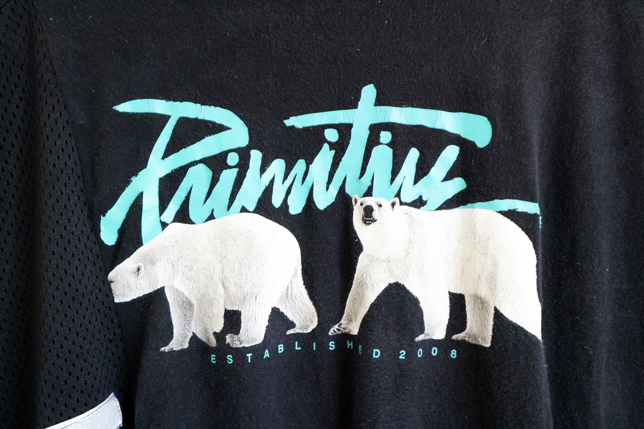 かわいい白くまプリントのTシャツと、メッシュ素材のベースボールシャツを使用した