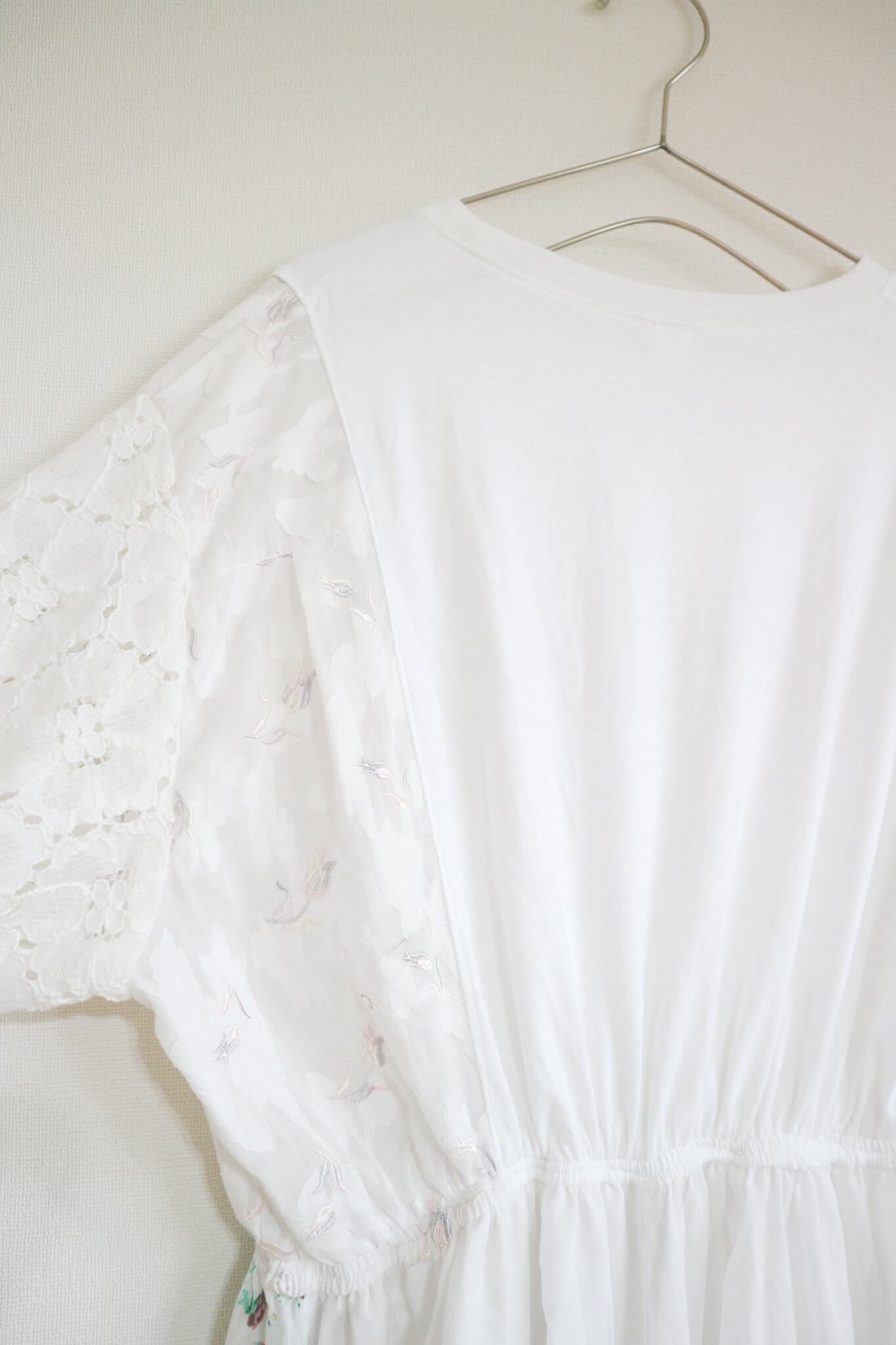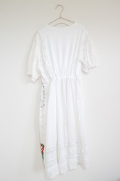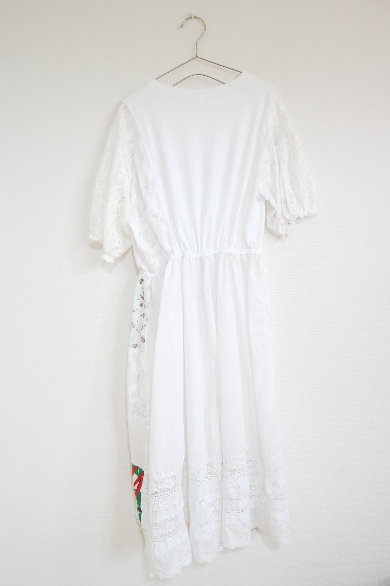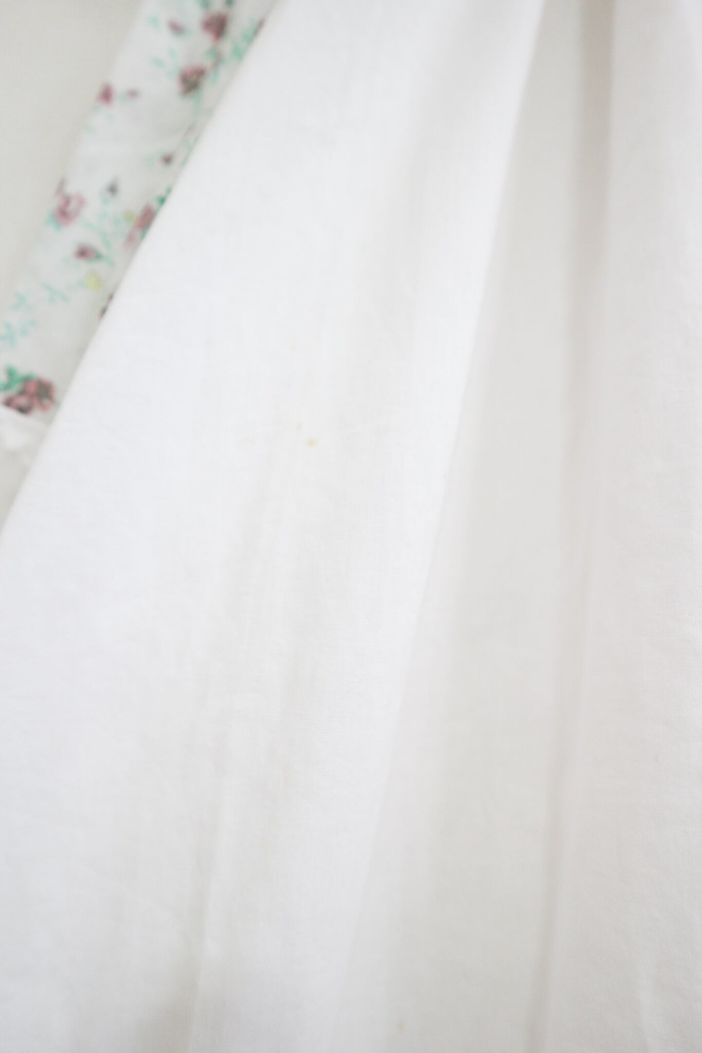 お袖まわりのコットンはパステルカラーのチューリップが刺繍された布地、スカートにはヴィンテージのコットンスカートを使用しています。
