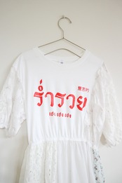 ユニークなタイの文字や、スカートには野菜柄の布地などを使用した